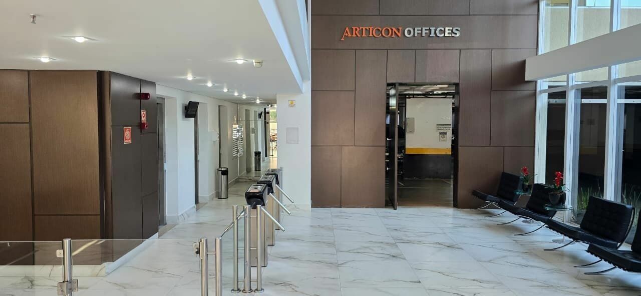 Com projeto arquitetônico Contemporâneo, o Edifício Articon Offices é composto por uma torre com 103 salas comerciais com vaga de garagem.